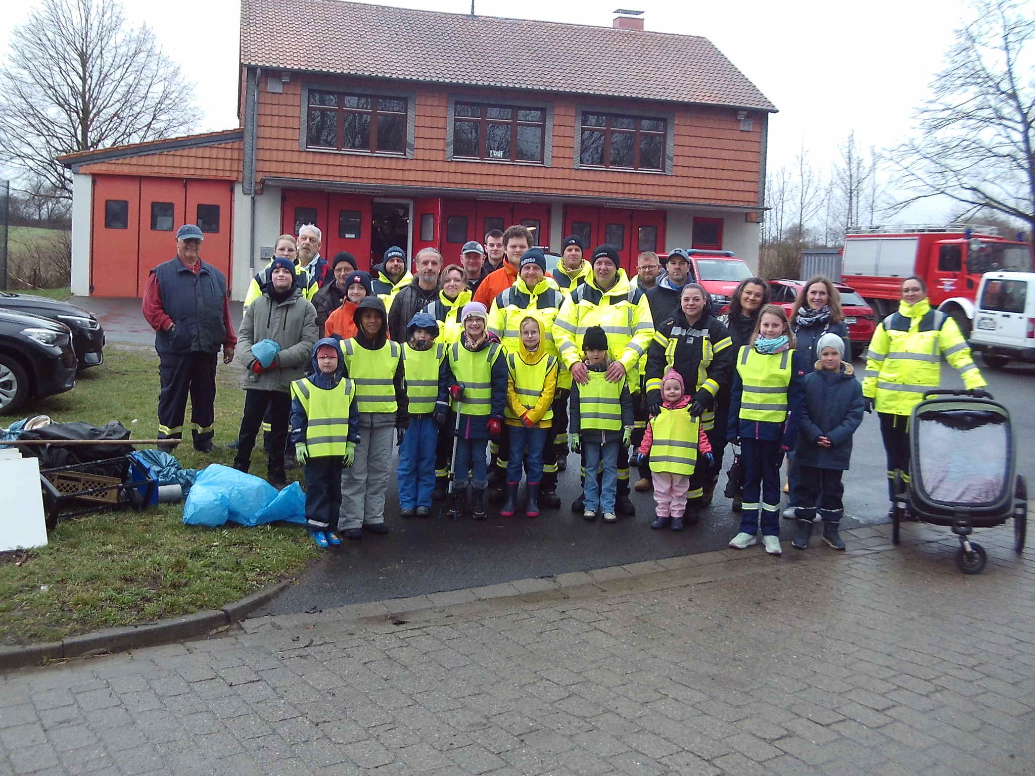 Auch die Ahlumer Bevölkerung beteiligte sich an der Aktion „Sauberes Wolfenbüttel“. Im Anschluss saß man bei Getränken und Würstchen noch in geselliger Runde zusammen. Ein besonders großer Dank geht an die Feuerwehr.